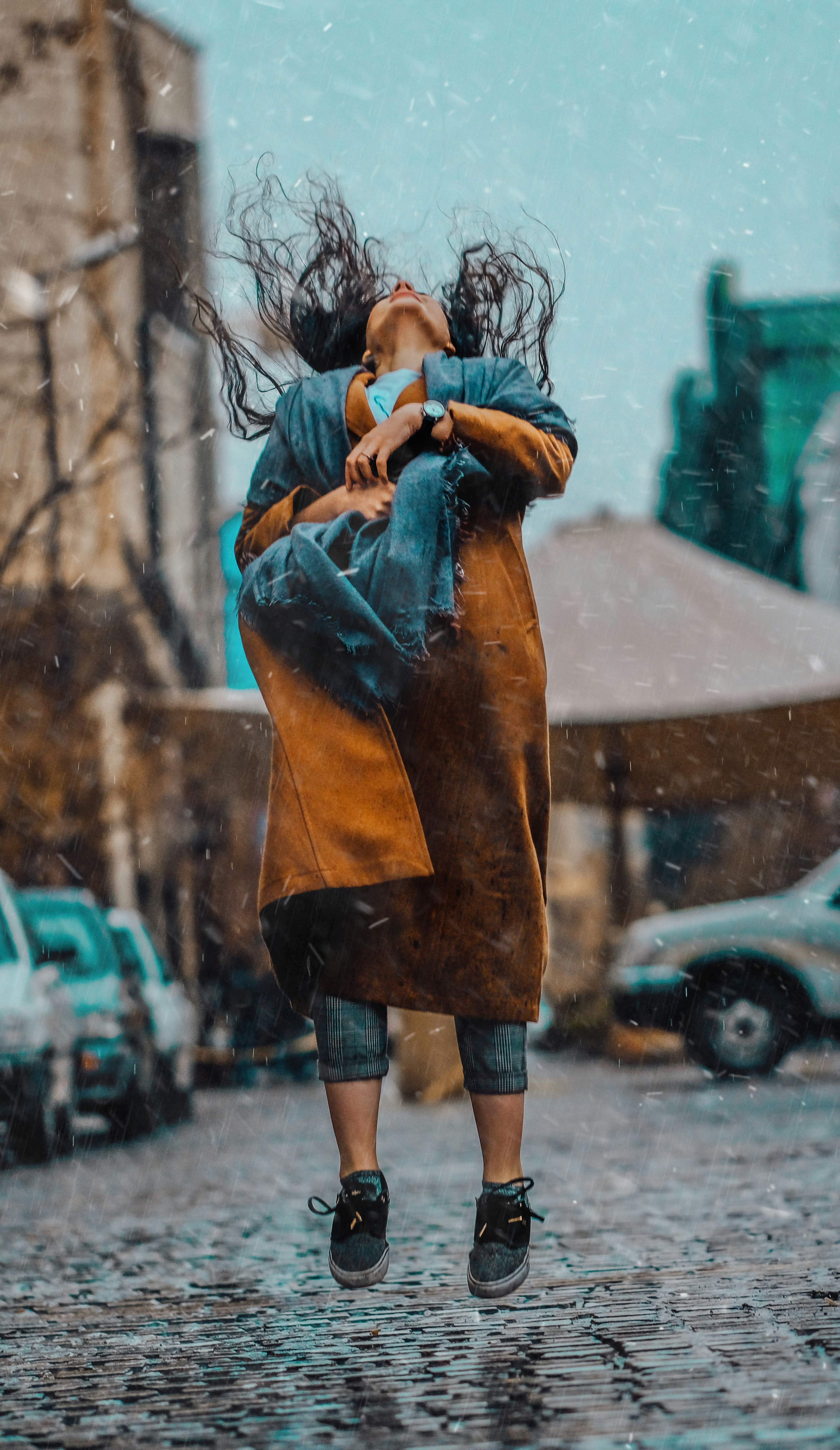 Woman Jumping Under Rain Photo Free Clothing Image On Unsplash