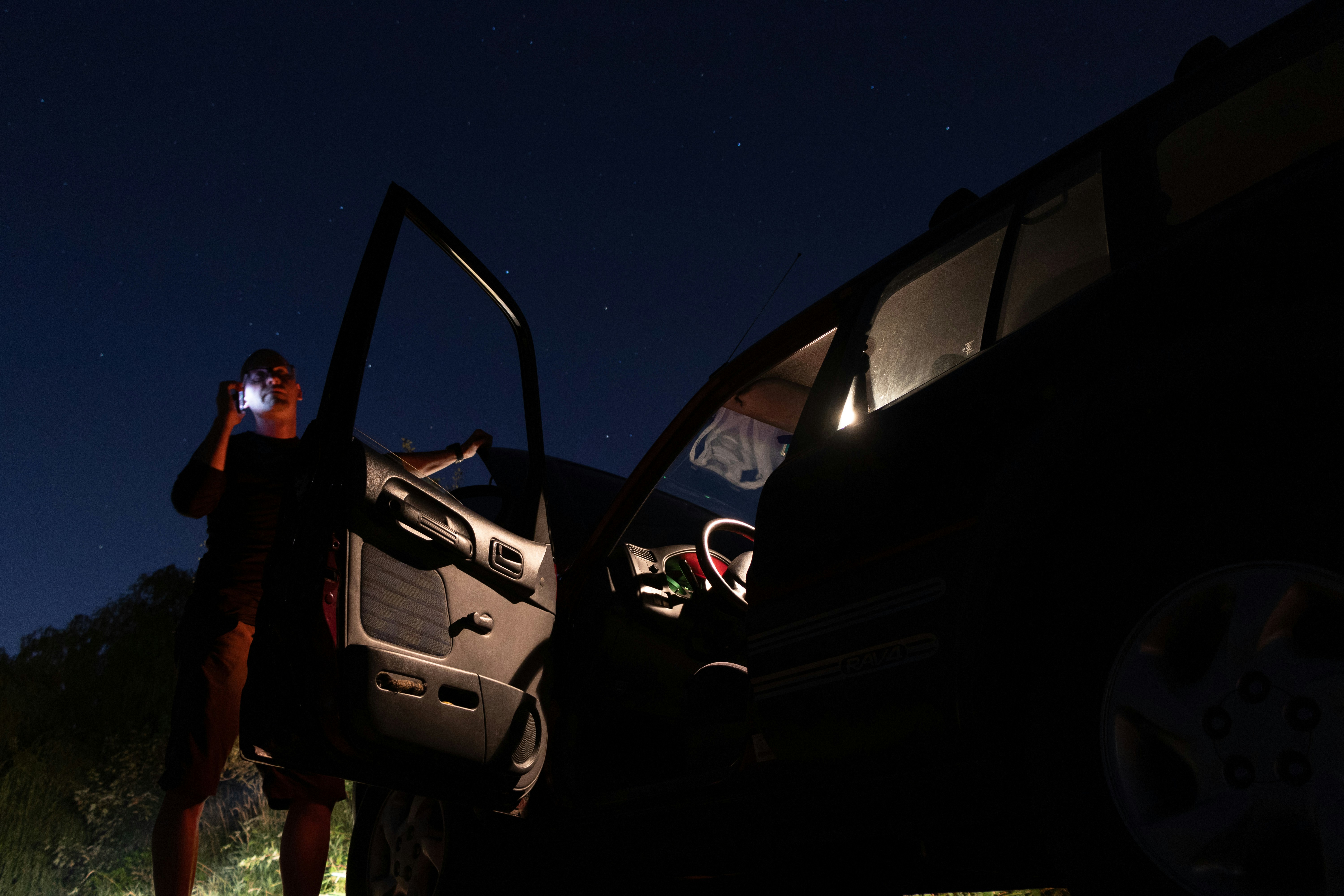 Man Beside Parked Car During Night Photo Free Machine Image On